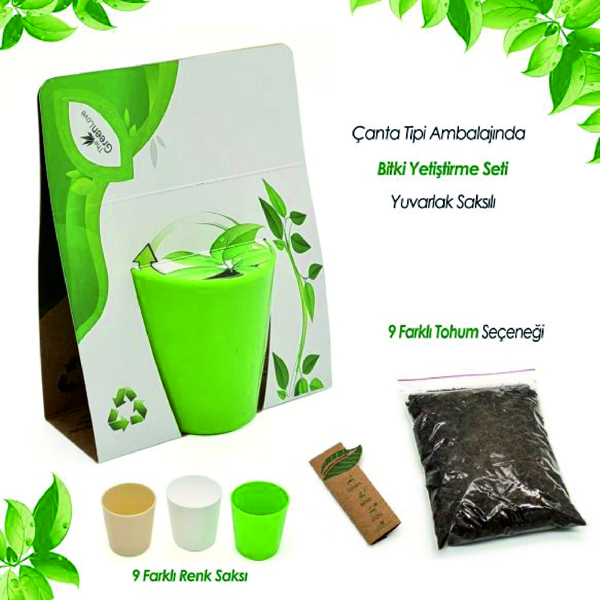 Çantalı Bitki Yetiştirme Seti, bitki yetiştirmeyi sevenler için harika bir hediye seçeneği. Yuvarlak yeşil renkte gizli su hazneli saksı, 200-250 gr arası torflu ve gübreli toprak ile paket içerisinde verilen tohumlarla kolayca bitki yetiştirebilirsiniz. Şık çantalı kutusu ile pratik bir hediyelik eşya olan bu set, masa üstü kalemlik olarak da kullanılabilir.