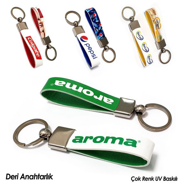 Deri Anahtarlık - Beyaz, şık ve dayanıklı yapısıyla dikkat çeken bir promosyon ürünüdür. Metal aparatı sayesinde anahtarlarınızı güvenle taşımanıza olanak tanır. Firmanıza özel 2 yönlü çok renkli baskı seçeneğiyle marka bilinirliğinizi artırmak için mükemmel bir fırsattır.