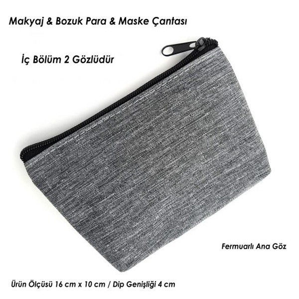 Şık ve kullanışlı bir makyaj çantası arıyorsanız, keten desenli İmperteks kumaştan üretilen bu ürün tam size göre! 22x13 cm ölçülerindeki çantanın dip genişliği 5 cm'dir. Günlük kullanım için ideal boyutlarıyla makyaj malzemelerinizi, bozuk paralarınızı veya maskelerinizi düzenli bir şekilde taşımanıza olanak tanır.