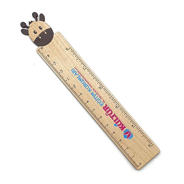 Ahşap Zürafa Cetvel, çocuklar ve yetişkinler için eğlenceli ve kullanışlı bir promosyon ürünüdür. 15 cm uzunluğunda ve 3 mm kalınlığında olup, tek yön MDF kaplamalı sağlam bir yapıya sahiptir. Firmanıza özel çok renk UV baskı imkanı ile logonuzu, sloganınızı veya mesajınızı cetvel üzerine bastırabilirsiniz. Krem, siyah ve beyaz renk seçenekleri ile her türlü marka ve tasarımla uyumlu bir görünüm sağlayabilirsiniz.