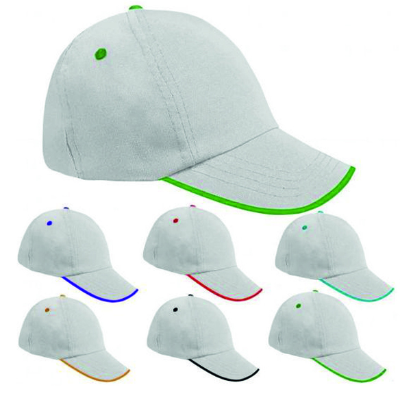 Düz beyaz gövdeli, renkli biyeli şapka; yerli üretim, polyester özel şapka kumaşından imal edilmiştir. Siperli, siper üstü kumaş kaplı, 4 dikişli siper, 5 panel, 2 panelde kuş gözü ve arka bölümde ölçü ayarı için cırt bantlıdır. Tek renk veya çok renk baskı imkanı sunmaktadır. Stoklu ürünler aynı gün kargoya verilir.