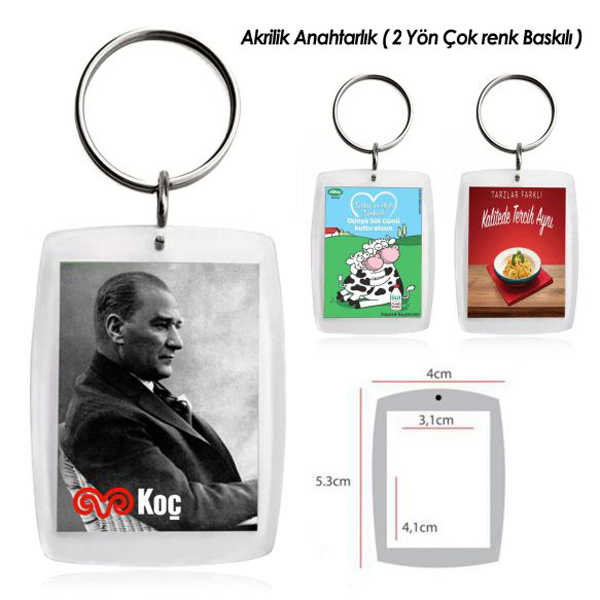 Ekonomik Akrilik Anahtarlık, kaliteli şeffaf kristal malzemeden üretilmiş, şık ve kullanışlı bir promosyon ürünüdür. 2 yönlü resim baskı imkanı sayesinde, logonuzu veya mesajınızı açıkça ve etkili bir şekilde sergileyebilirsiniz. Halka ve zincirli alternatif modelleri ile farklı kullanım ihtiyaçlarınıza cevap verir. 40 mm x 53 mm ebatlarında büyük boy modeli ile dikkat çekici bir görünüm sunar.