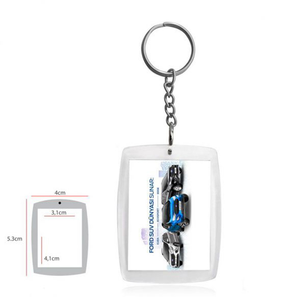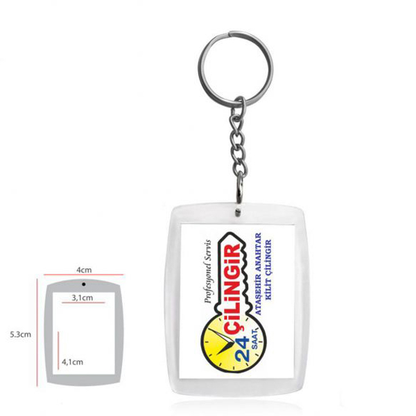 Ekonomik Akrilik Anahtarlık, kaliteli şeffaf ve kristal malzemeden üretilmiştir. Halka veya zincirli seçenekleri ile dilediğiniz şekilde tasarlanabilir. 2 yönlü resim baskı imkanı sayesinde logonuzu veya mesajınızı iki taraflı olarak sergileyebilirsiniz. 40 mm x 53 mm ebatlarında, büyük bir alana sahip olan anahtarlık, dikkat çekici ve kullanışlı bir promosyon ürünüdür.
