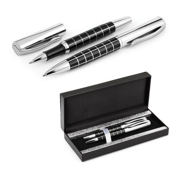 Hediyelik veya promosyon amaçlı kullanım için mükemmel bir seçenek olan bu kalem seti, şık bir kutu içinde sunulan roller ve tükenmez kalemlerden oluşmaktadır. Kalem setleri, kurumsal kimliğinizi yansıtan tampon baskı, UV baskı veya lazer baskı seçenekleriyle kişiselleştirilebilir.