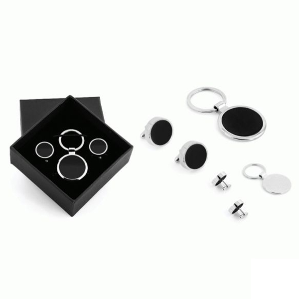 Set, yüksek kaliteli metalden üretilmiş bir anahtarlık ve bir çift kol düğmesinden oluşur. Anahtarlık ve kol düğmeleri, lazer baskı seçeneği ile kişiselleştirilebilir. Logonuz, şirketinizin adı veya özel bir mesajı lazerle kazıyarak, hediyenizi daha da özel hale getirebilirsiniz.