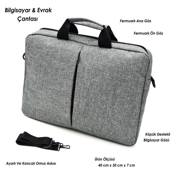 Laptop - Evrak Çantası, iş hayatınızda veya günlük kullanımda eşyalarınızı düzenli ve güvenli bir şekilde taşımak için ideal bir çözümdür. 40 cm x 30 cm ebatlarında üretilen bu dayanıklı çanta, laptopunuzu, evraklarınızı ve diğer önemli eşyalarınızı güvenle taşımanıza olanak tanır.