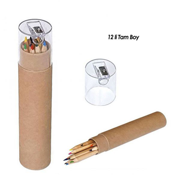 12'li Tam Boy Silindir Kraft Kutulu Boya Kalemi Seti, her türlü ihtiyaca cevap verebilecek pratik ve şık bir seçenektir. Seti oluşturan 12 adet tam boy, natürel kuru boya kalemi, canlı renk seçenekleriyle yaratıcılığı besler. Kalemtıraş özelliği bulunan kapak, kullanışlılığı artırırken, tampon, serigrafi veya UV baskı seçenekleri, logo veya mesajınızı belirginleştirerek kişiselleştirme olanağı sunar.