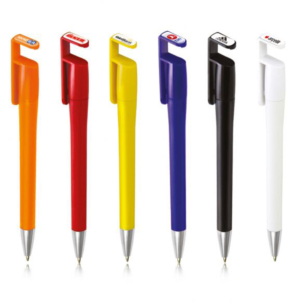 Telefon Standlı Kalem'e tampon, UV veya domeks baskı uygulanabilir. Domeks baskı fiyatına dahil değildir. İsteğe bağlı olarak, kalemin klipsine 4 renk damla etiket baskısı da uygulanabilir.