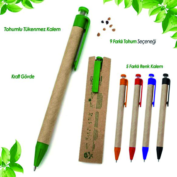 Tohumlu Tükenmez Kalem, sürdürülebilirliği ve yaratıcılığı bir araya getiren benzersiz bir promosyon ürünüdür. Kalem bittiğinde, kapaktaki tohum haznesini ekim için kullanabilirsiniz. Geri dönüşümlü gövde ile çevre dostu bir tercih sunan kalem, özel kraft kutusu içinde paketlenerek daha da değerli hale getirilir.
